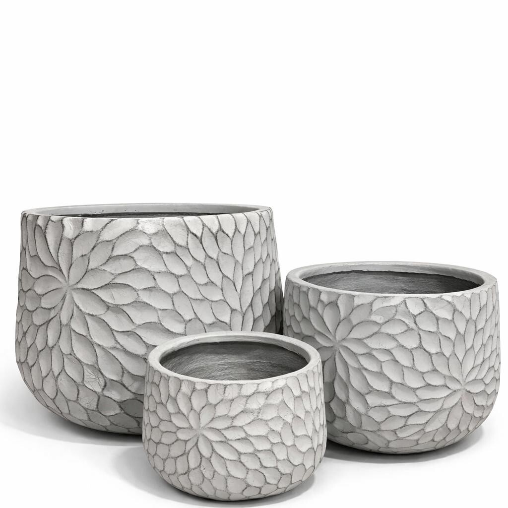 R4019 Çiçek Desenli Oval Beton Saksı, floral desenli özel yüzeyi ve yumuşak oval formu ile mekânlara estetik ve doğal bir hava katar. El işçiliğiyle oluşturulan çiçek motifleri sayesinde dekoratif değeri yüksek, dikkat çekici bir beton saksı modelidir.