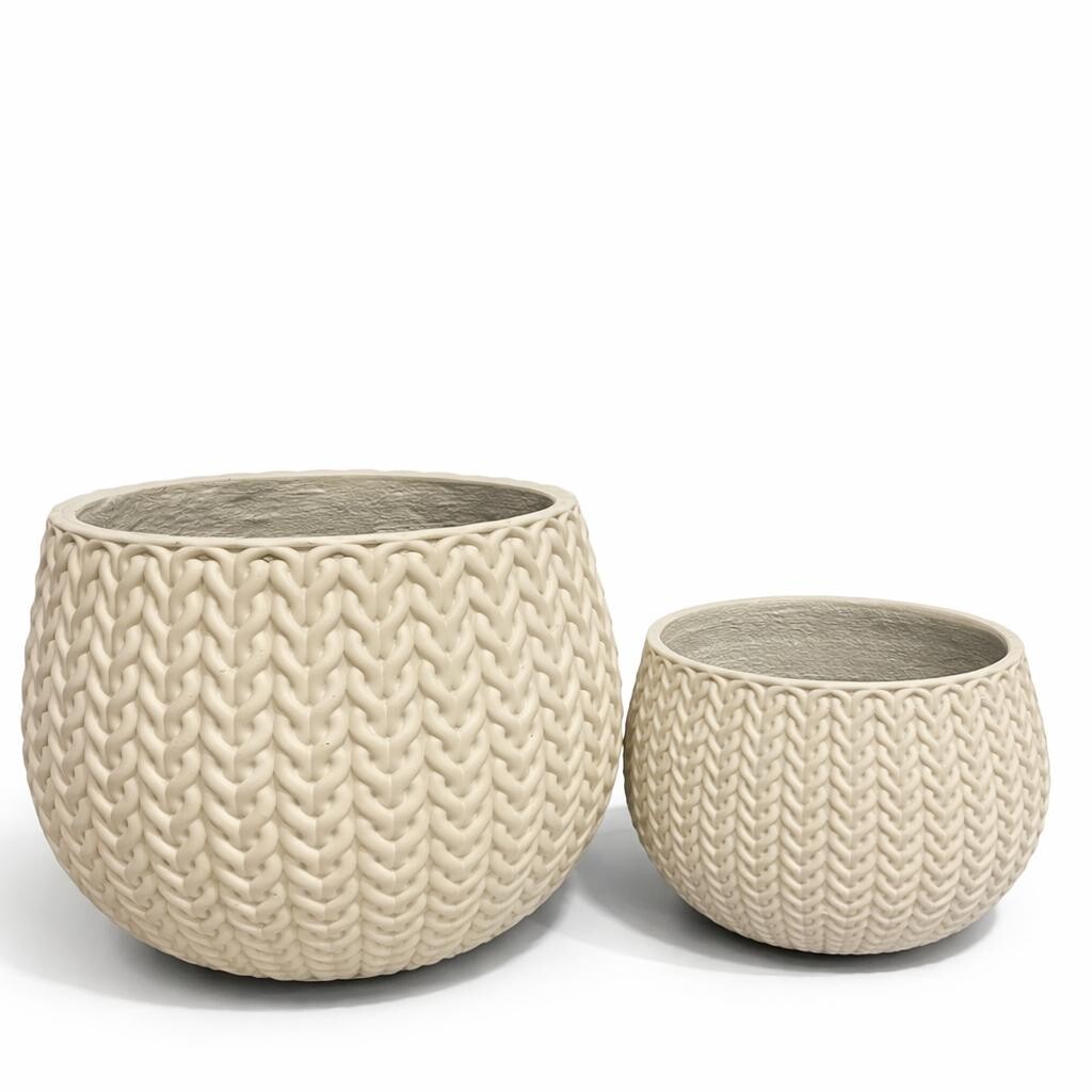 Modern tasarımı ve el işçiliği örgü dokusuyla öne çıkan R4084 lüks beton saksı, iç ve dış mekân bitki dekorasyonu için şık ve dayanıklı bir çözümdür. Krem ve siyah renk seçenekleriyle sunulan bu beton saksı, farklı boyut alternatifleri sayesinde her alana