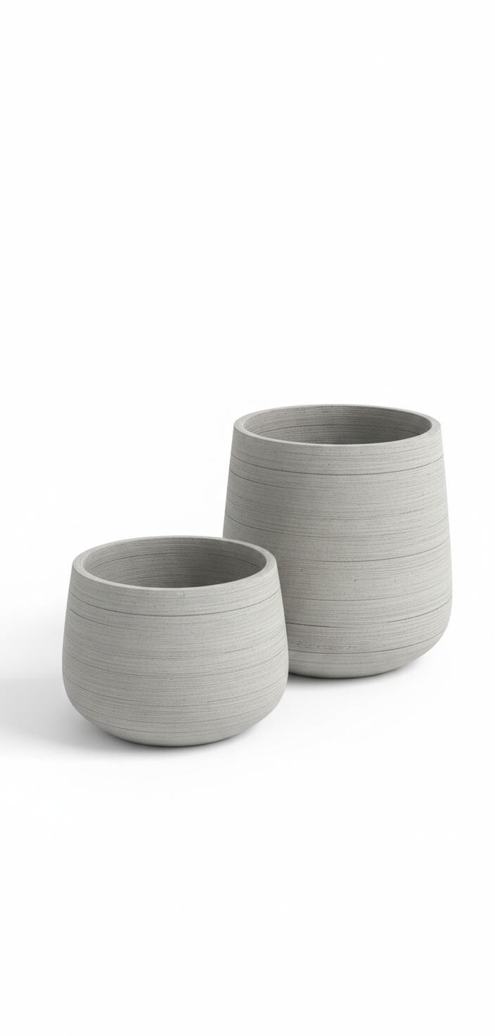 R4134 Lüks Açık Gri Beton Saksı, yuvarlatılmış formu ve yatay çizgili yüzey dokusuyla modern ve zamansız bir tasarım sunar. Dengeli oranları sayesinde iç mekân dekorasyonlarından bahçe ve teras uygulamalarına kadar geniş bir kullanım alanına sahiptir.